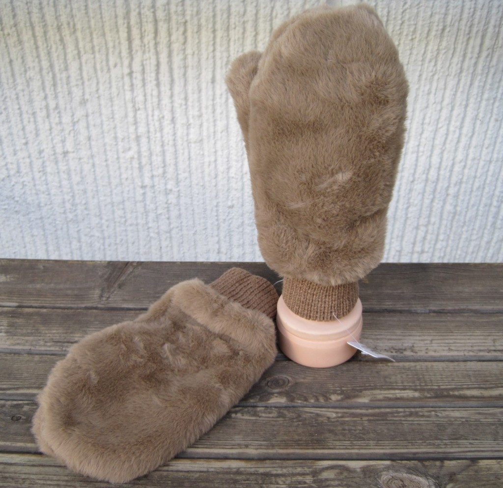 Sköna fodrade tumvantar av mjuk och len fuskpäls