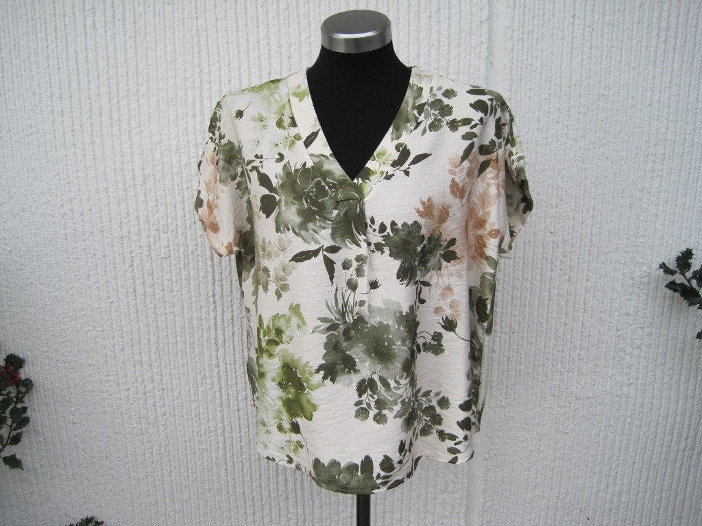 Blommig viskosblus med kort ärm. Natur / grön Blommig viskosblus med kort ärm. Natur / grön Blommig viskosblus med kort ärm. Natur / grön
