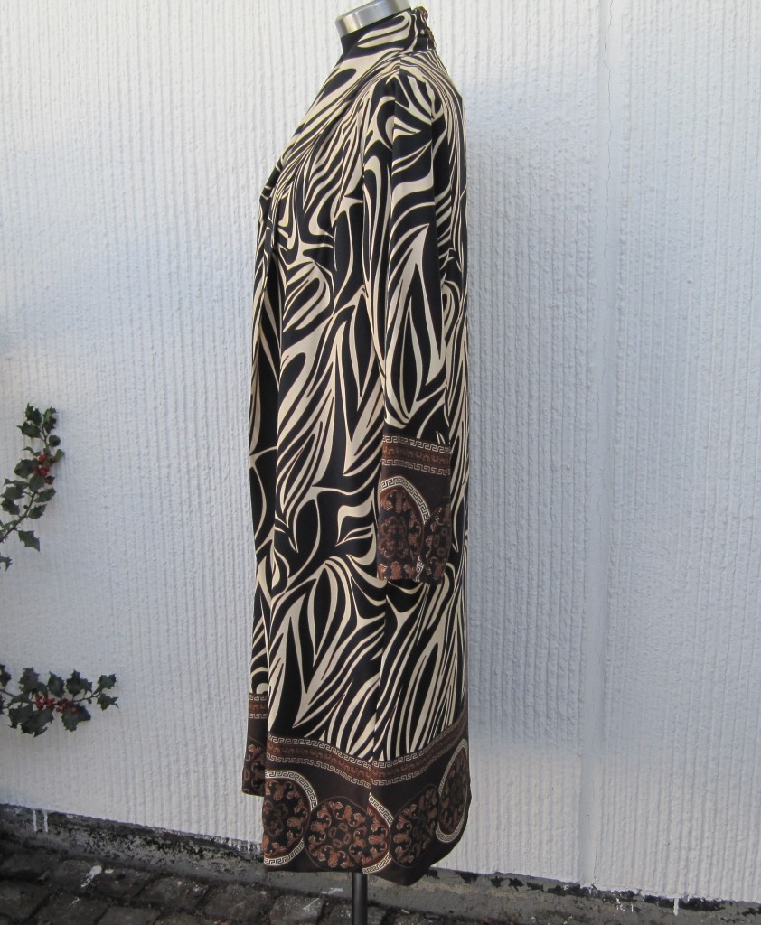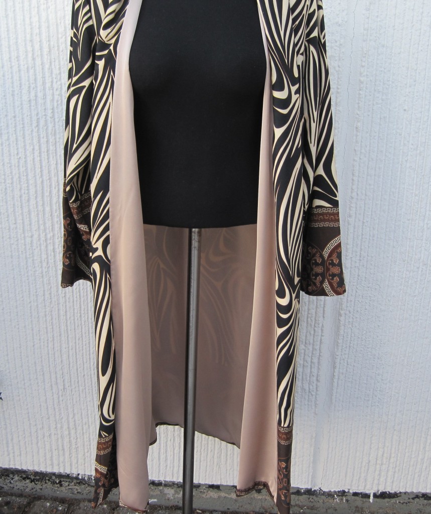Snyggt mönstrad tunn kappa/kimono i rak öppen modell med sjalkrage