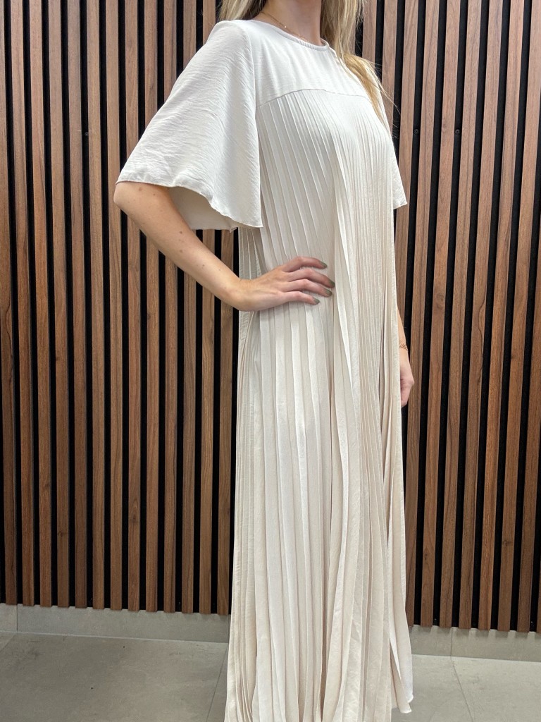 Gemini - Majo Beige Plisserad Lång Klänning Gemini - Majo Beige Plisserad Lång Klänning Gemini - Majo Beige Plisserad Lång Klänning