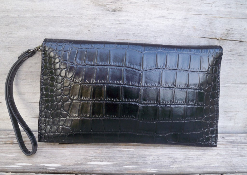 Krokodilmönstrad svart väska från David Jones.