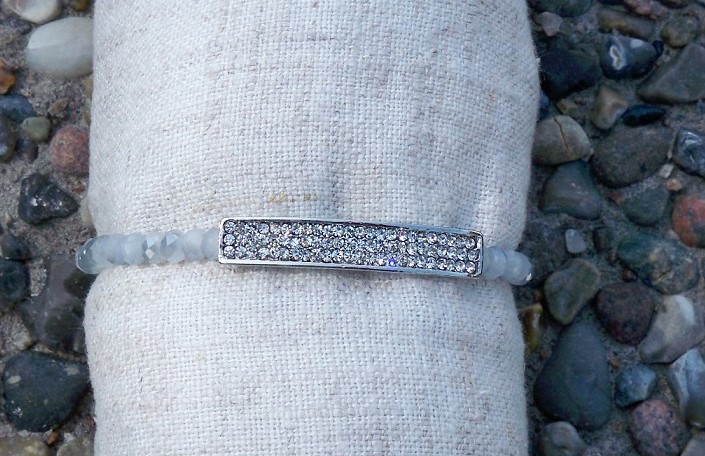 Elastiskt Armband Facettslipade Stenar Ljusgrå