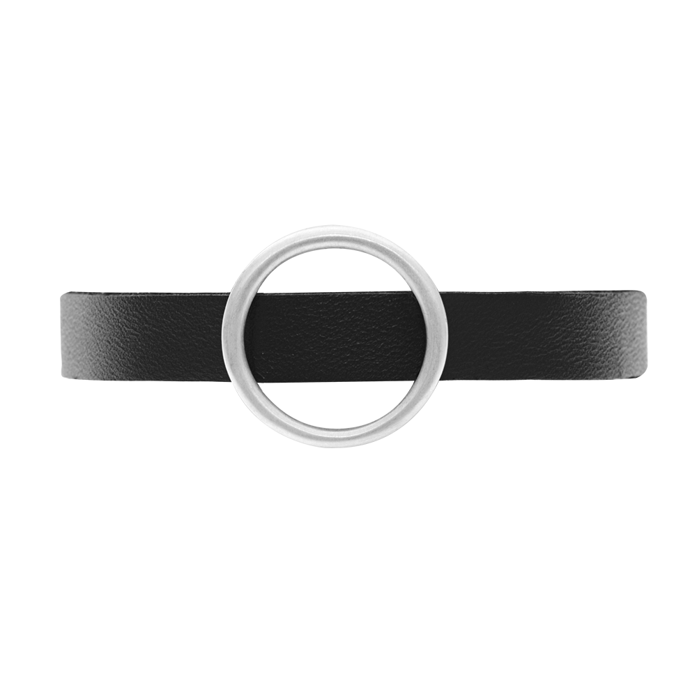 Svart mjukt och smidigt läder med silverpläterad ring ca 2,5 cm i diameter