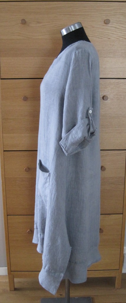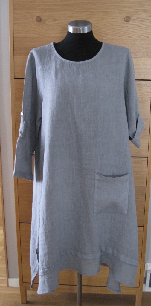 Grå Vadlång Linneklänning Med 3/4 Ärm
